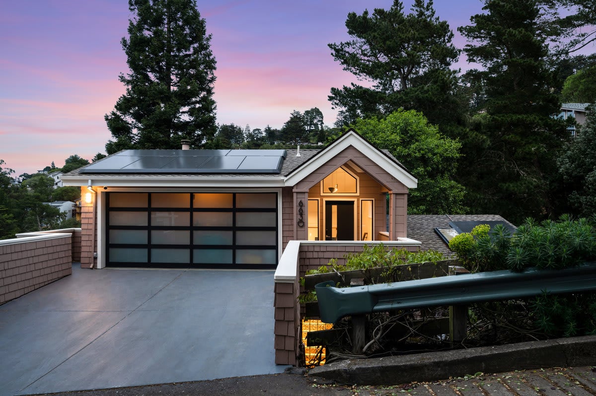 his chic, sophisticated Contemporary stands proud in the Oakland HIlls on a private street in a serene wooded setting! Every inch of the light-filled, open layout has been designed to delight with no expense spared from the new walnut hardwood floors to the luxurious European tile finishes & high-end floating walnut stairs with glass railings. The generous 2591sf floorplan features open-concept living space on the main level with a chef’s kitchen boasting quartz counters & a herringbone tile backsplash, adjacent family room, dining room, living room or step out to the large back deck to entertain your guests. Plus, there’s a main-floor office where you can work from home. All bedrooms are nestled on the lower level, including your luxe primary retreat with a large walk-in closet, an opulent bath with freestanding tub, double vanity and shower. A long list of features includes owned solar, e-charger, and battery backup. Located close to shops, trails, restaurants and renowned schools.
